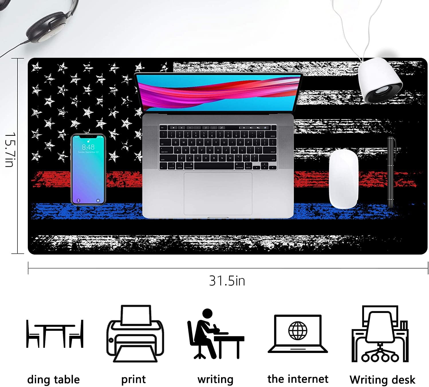 Extended Large Gaming Mouse Pad Red Blue American Flag XXL Size Keyboard Mouse Mat Desk Pad with Non Slip Rubber Base Stitched Edges Office Decor for Women Girls Men,35.4 x 15.7inch