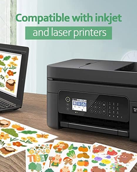 • 【Compatible with most printers】 Glossy vinyl sticker paper is compatible with inkjet printers, laser printers and magnetic printers manufacturers such as Epson, HP, Brother, Canon, etc. Easy to use, just drop directly into the printer. To avoid errors when printing, make sure to print on a chalky white surface.