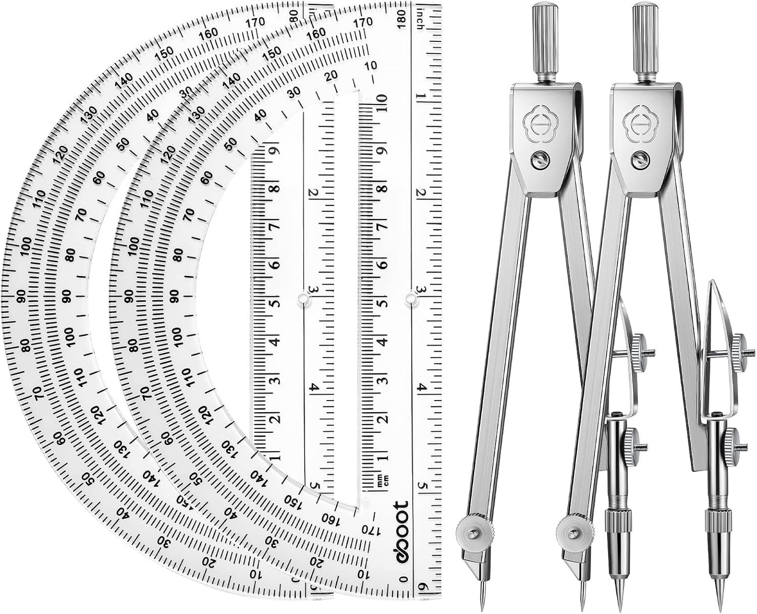 • Size information: the length of a drafting compass is 4.5 inch, the length of the box is 5.5 inch, and the width is 1 inch; The diameter of the protractor for school is 6 inches; They are lightweight and easy to carry
