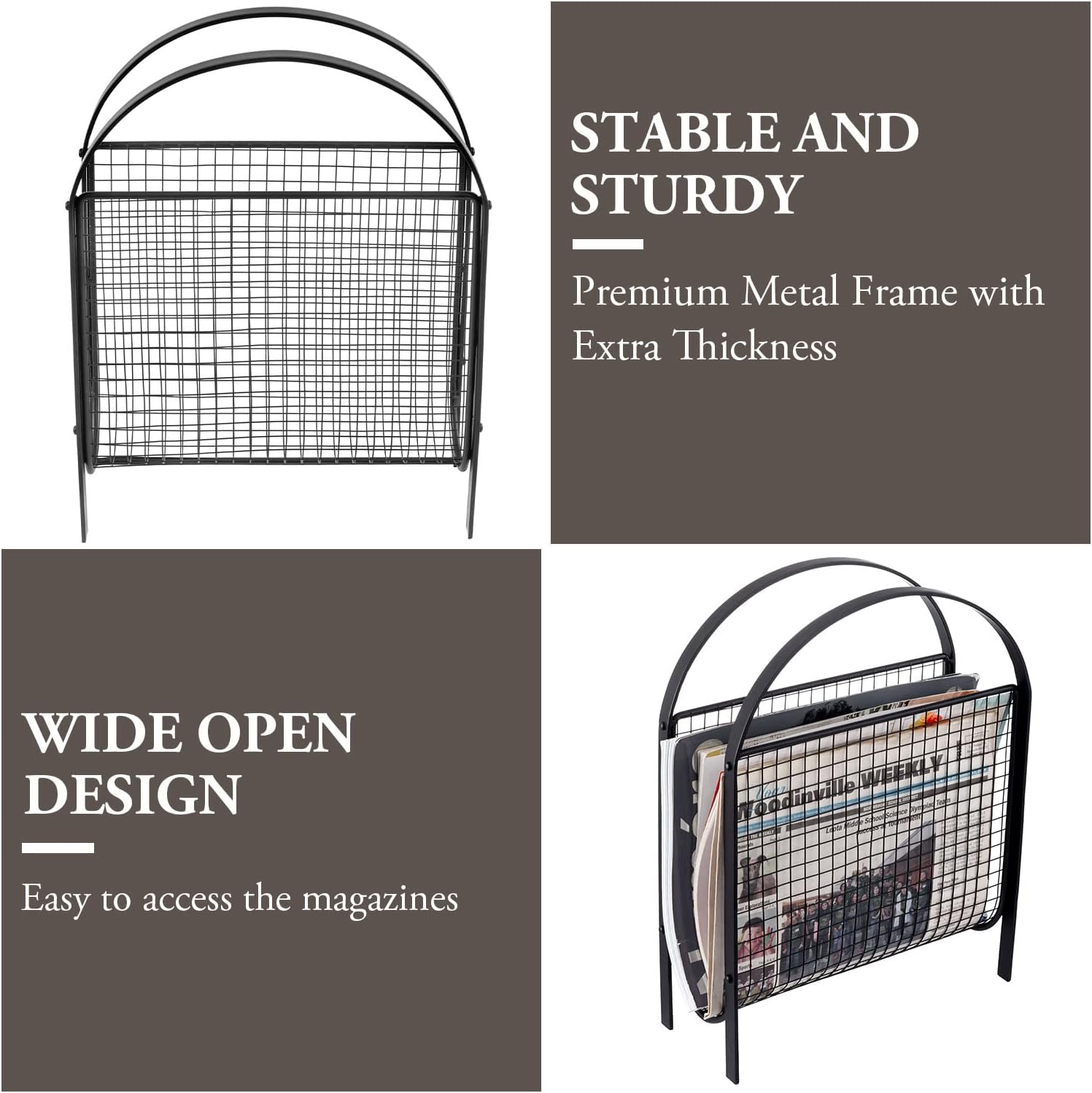 MyGift Mid-Century Design Magazine Rack, Matte Black Tone Metal Mesh Freestanding Magazine Organizer Holder Sling