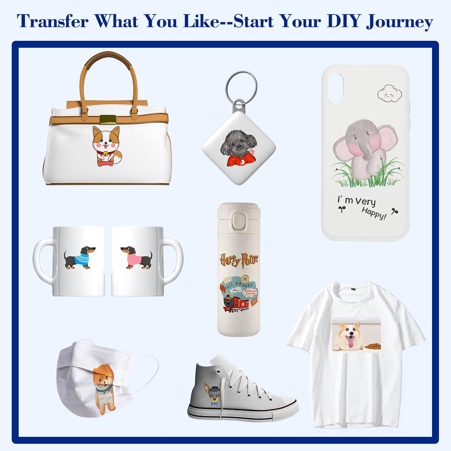 • DIY Your Sublimation Blanks: Start your sublimation ink DIY process and make special gifts for others. Refill the sublimation ink into your ecotank printer, then print your favor image on the sublimation paper and heat transfer the image on the items. DIY images can be applied on mugs, T-shirt, cloth, cap, ceramic, mouse pad, keychain, bags, etc. The sublimation ink can only be used on fabrics with a cotton content of less than 30%. After transfer, the T-shirt needs to cool down before washing