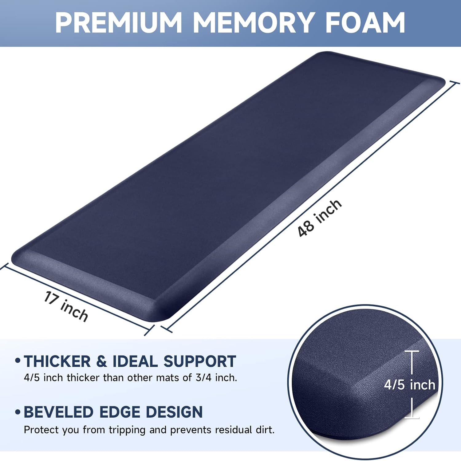 StepRite 4/5 Inch Thick Kitchen Mat Anti Fatigue Mat Kitchen Rugs Kitchen Decor Non-Slip, Stain Resistant, Waterproof Kitchen Mats Desk Mat for Kitchen, Office, Workshop, Blue, 17'' x 47''