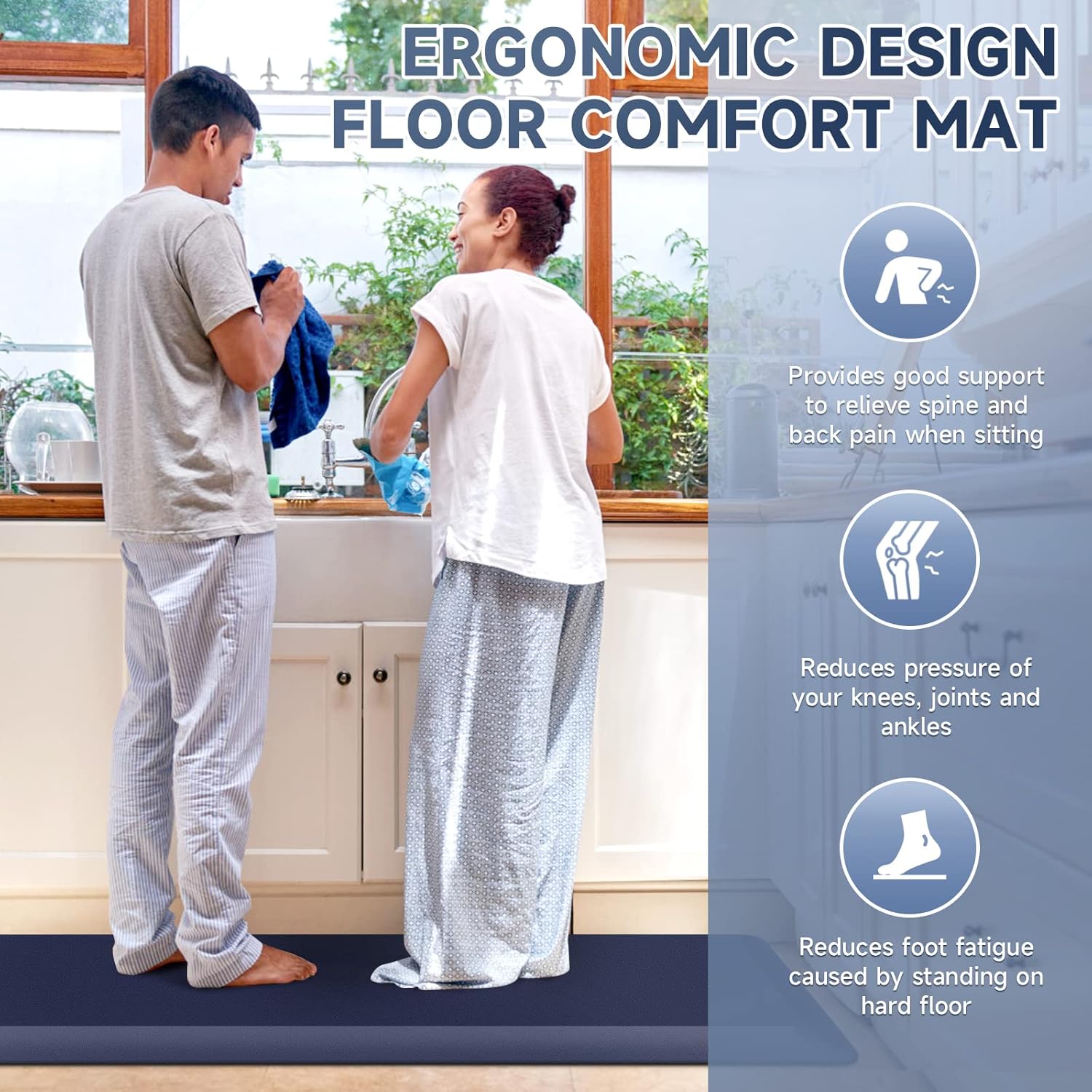 • 【Anti-Fatigue】Comfort floor mat provides comfort when standing. Reduces pressure on knees and ankles. Relieves back and spine pain when standing and relieves fatigue caused by standing for long periods.