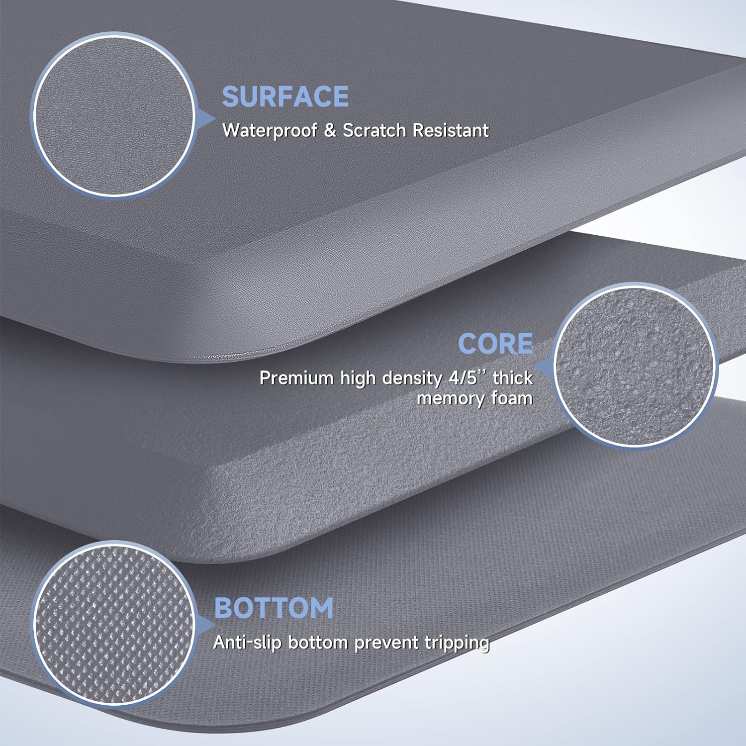 • 【Thicker Mat】The StepRite kitchen mat is made of 4/5 inch thick memory foam for better support and comfort when standing. Measured as 17*28 inches. Suitable for kitchen, office, laundry room or any high-traffic area.