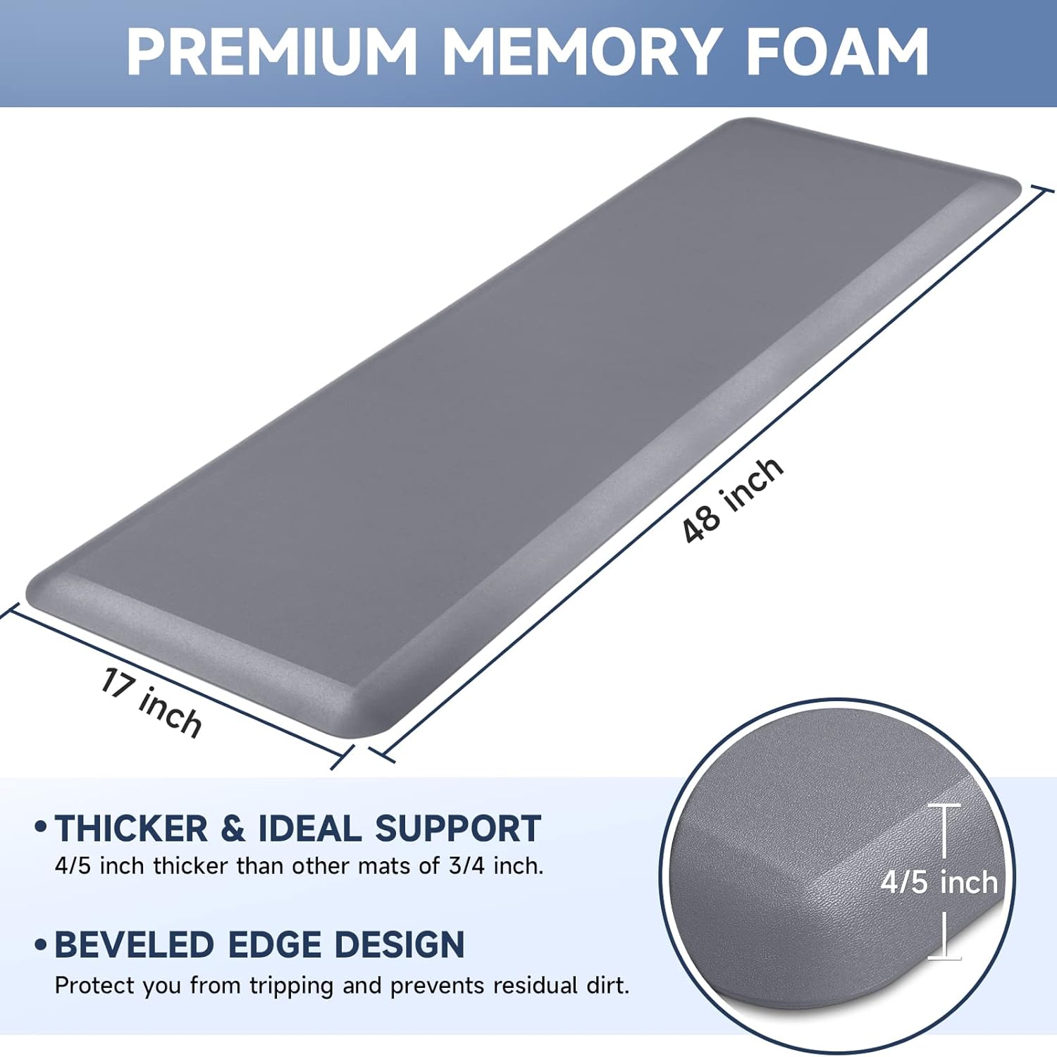 • 【Thicker Mat】The StepRite kitchen mat is made of 4/5 inch thick memory foam for better support and comfort when standing. Measured as 17*47 inches. Suitable for kitchen, office, laundry room or any high-traffic area.