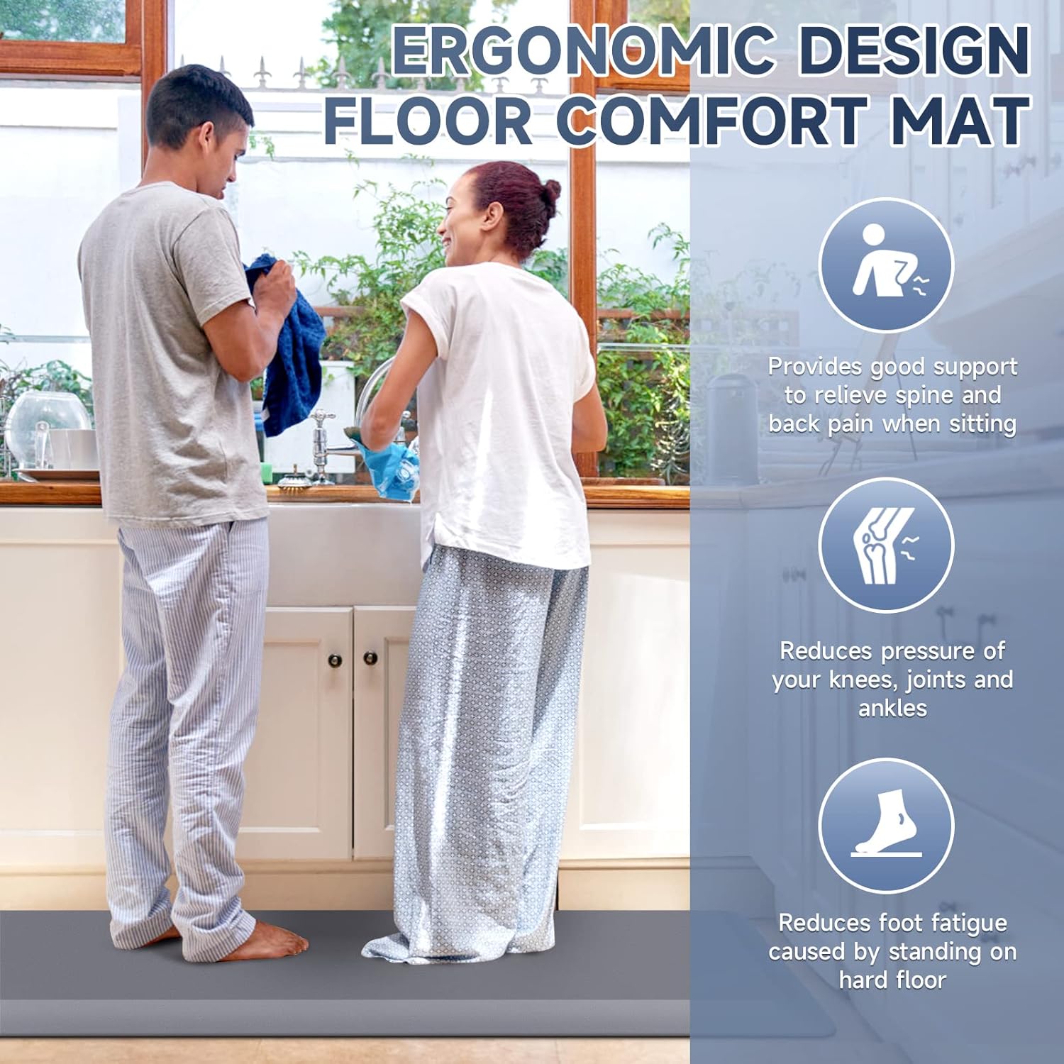 • 【Anti-Fatigue】Comfort floor mat provides comfort when standing. Reduces pressure on knees and ankles. Relieves back and spine pain when standing and relieves fatigue caused by standing for long periods.