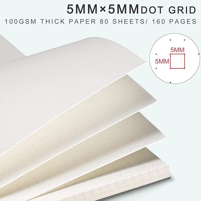• 100GSM Thick Dotted Paper - Acid free thick dotted paper that is fountain pen friendly. No bleeding through, ghosting or feathering. 20% Thicker than normal.