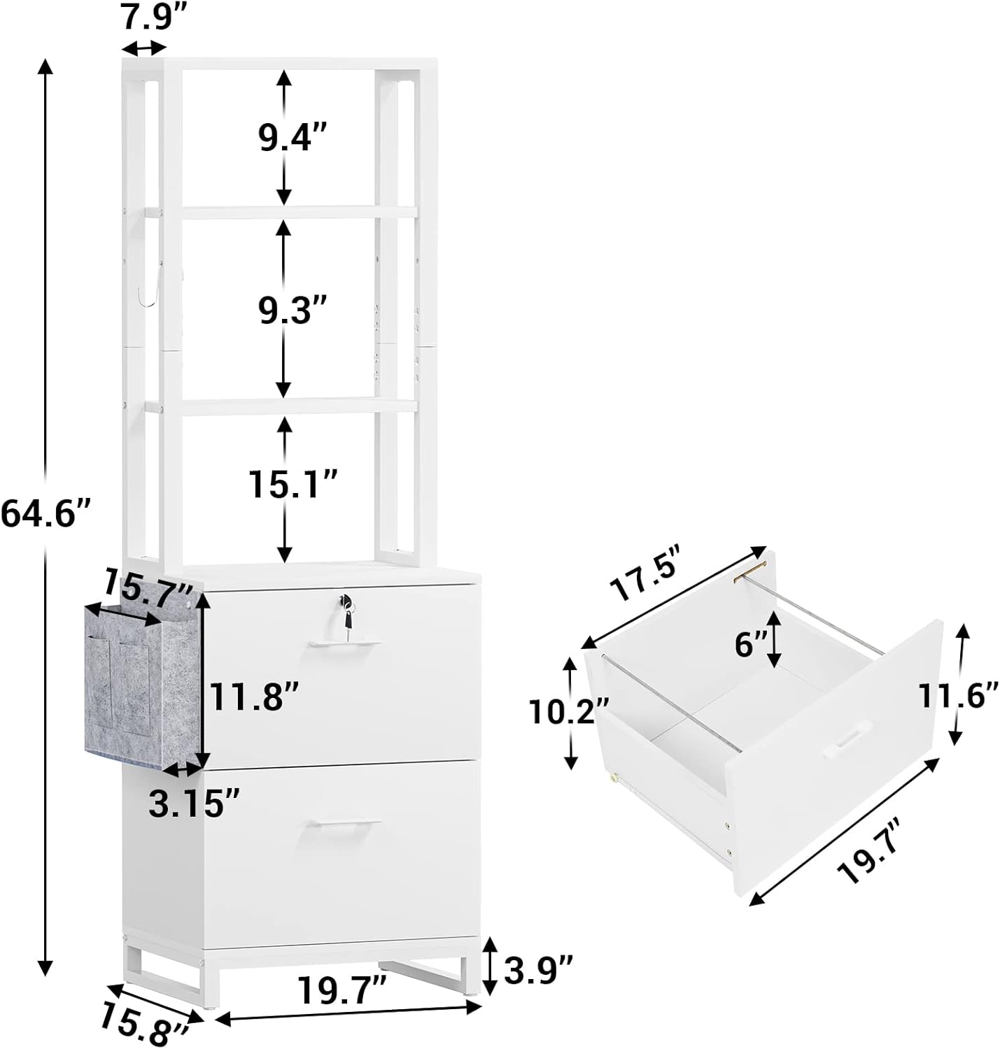• 【Ample Storage Space】 19.68" L x 15.7"W x 64.56" H file cabinet is perfect for your home office. 6 tier shelf tall file cabinet provides enough room to hold bookshelf, printer, photocopier, etc. And side storage bag can hold books, file for your home office. The hook can be used to hang headphones, cap, etc.