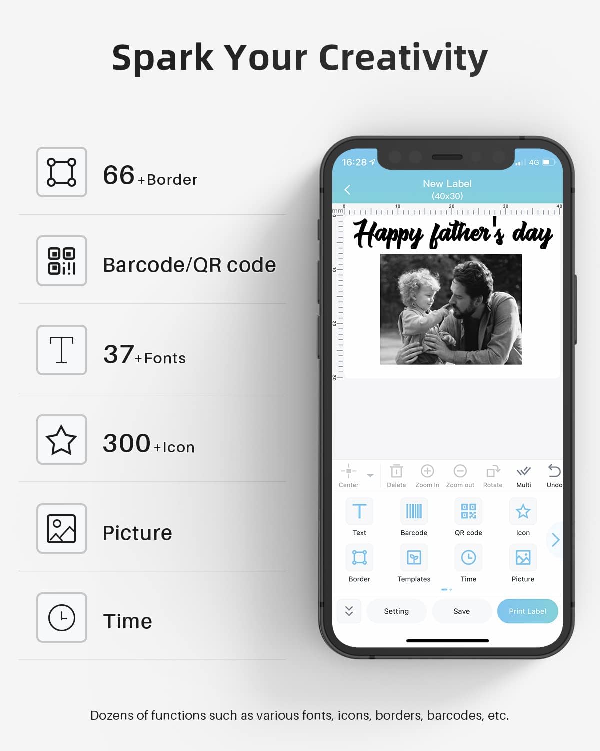 • All-singing, All-dancing APP - Phomemo's R&D team create the Print Master APP for you, with a variety of built-in functions. One-click use: text, pictures, barcodes, QR codes, OCR, Form, hundreds of icons, and many pre-made templates for commercial and home use. Improve your efficiency