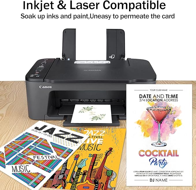 • Printer Friendly: Sturdy and versatile, our thick cover stock paper is compatible with most types of inkjet, laser printers and photocopy machines ; Please check your printer manually to be sure your printer can handle their size and weight
