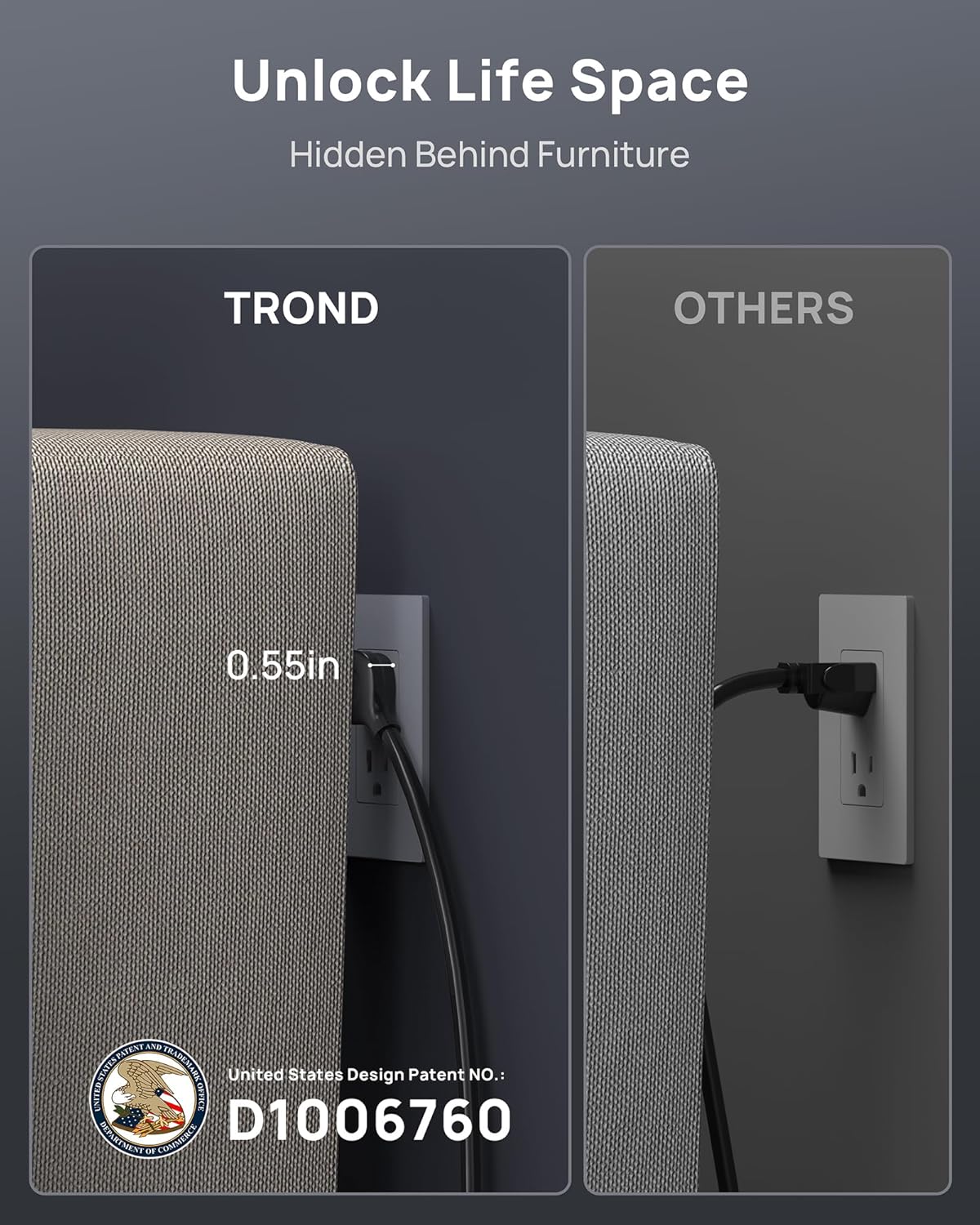 • 15ft extension cord flat plug - Made of 14awg pure copper, the 15-foot long power cord is heavy-duty and has better current carrying capacity (15A). The low-profile space-saving 45° angled flat plug doesn’t block the bottom receptacle