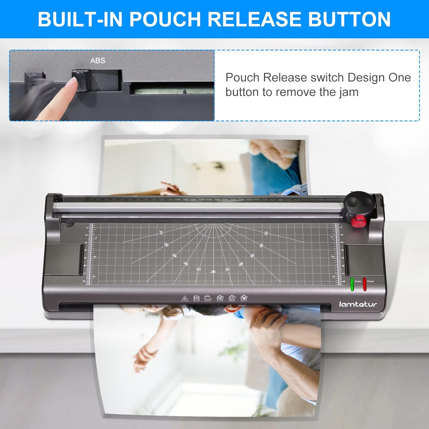 • 【Flatter Lamination Effect and ABS One-Touch Paper Jam Prevention】Different from the traditional glass heating tube, we use stronger mica sheet for heating, so that the heat is more stable, more flat and less prone to blistering. The one-touch ABS eject function can better for no jam.