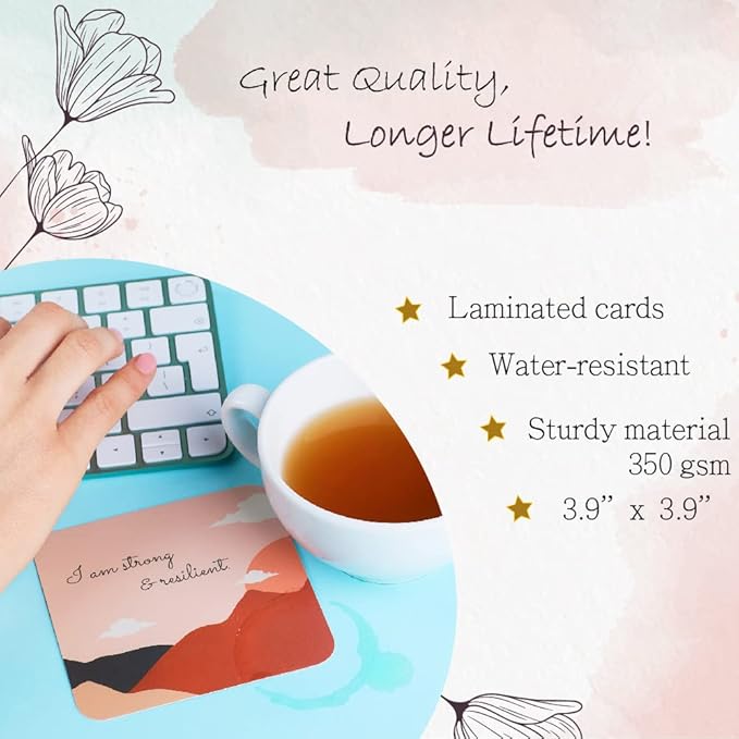 • Gift ready, made to last - Perfect in size(not too big or small) 3.9''x3.9'', concise, clean & clear writing (easy to read and understand), only positive words used, gold foil accents, water & rip resistant, rounded edges, gift ready box. These mother to be cards not only they are efficient in motherhood support but they are made to last motherhood, making them, in our opinion, the best postpartum gifts for mom / encouragement gifts for moms / gifts for new mom.