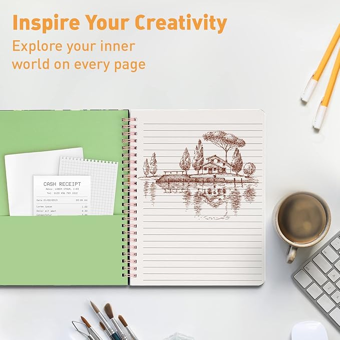 • A Pocket Always Helps — It's annoying to find important scraps of paper crumpled at the bottom of your bag. These spiral notebooks college ruled journals include a double-sided pocket page to store pens, receipts and loose papers