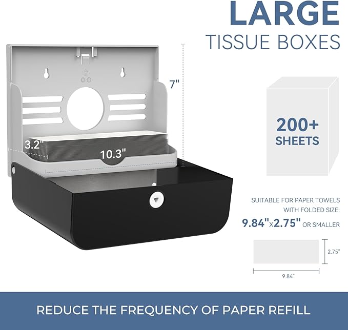 • Large Capacity -- our economical folded paper towel holder can hold up to 200 paper towels, which is very suitable for public places.