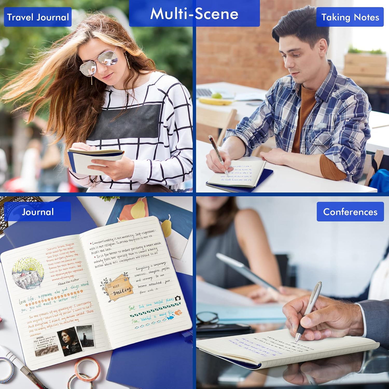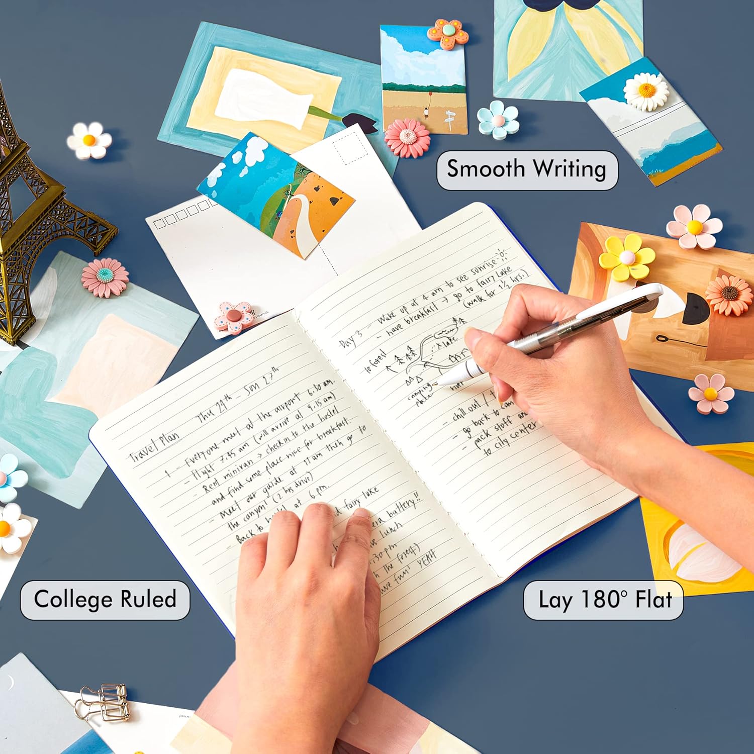 • Feela 16 Pack Soft Cover Journals include 16 navy A5 college ruled soft cover travel journals. 250 GSM colored paper cover outside and 80 GSM smooth writing lined pages inside.
