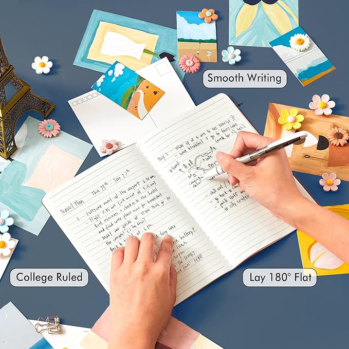 • These travel journals bulk for women have 92 blank lined pages (46 sheets), which would be sufficient for daily usage. The note taking notebooks have a smooth cover, round corners and tight stitching, which are designed to lay 180° flat. Some quick notes can help you remember important dates and find the page you want in a very short time.