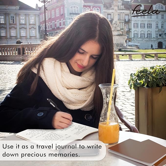 • Feela 16 Pack Soft Cover Journals include 16 brown A5 college ruled soft cover travel journals. 250 GSM colored paper cover outside and 80 GSM smooth writing lined pages inside.