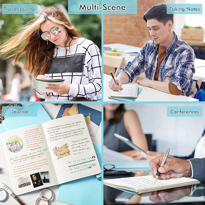 • Feela 16 Pack Soft Cover Journals include 16 light blue A5 college ruled soft cover travel journals. 250 GSM colored paper cover outside and 80 GSM smooth writing lined pages inside.