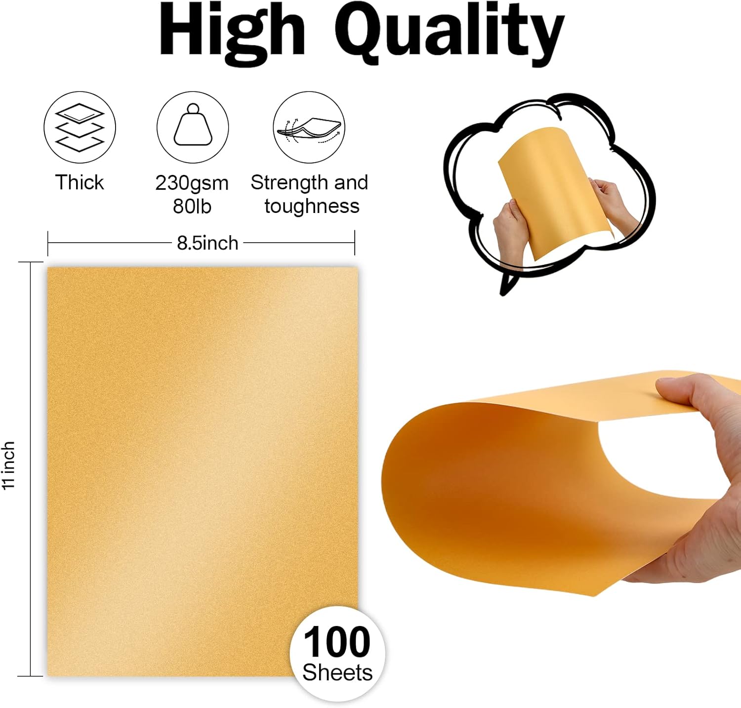 • Paper Dimension: Each package includes 100 sheets of gold cardstock paper, measures 8.5 x 11 inches in size, 230 grams in weight