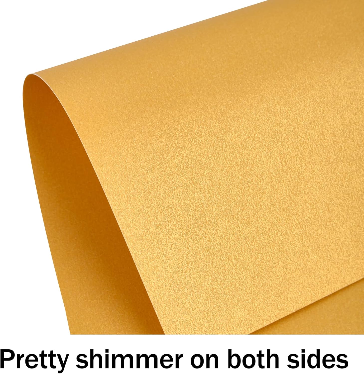 100 Sheets Gold Shimmer Cardstock 8.5 x 11 Metallic Paper, Goefun 80lb Card Stock Pearlescent Paper for Invitations, Birthday, Anniversaries, Card Making