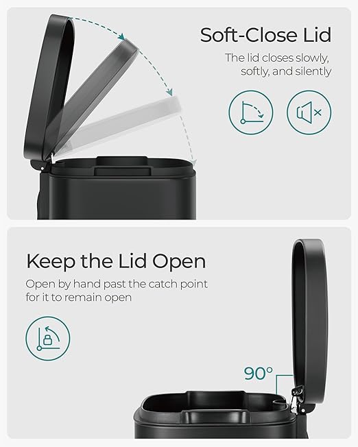 • [Soft-Close, Odor-Sealing Lid] This kitchen trash can features a slow and quiet soft close lid. The tight seal of the lid prevents lingering odors