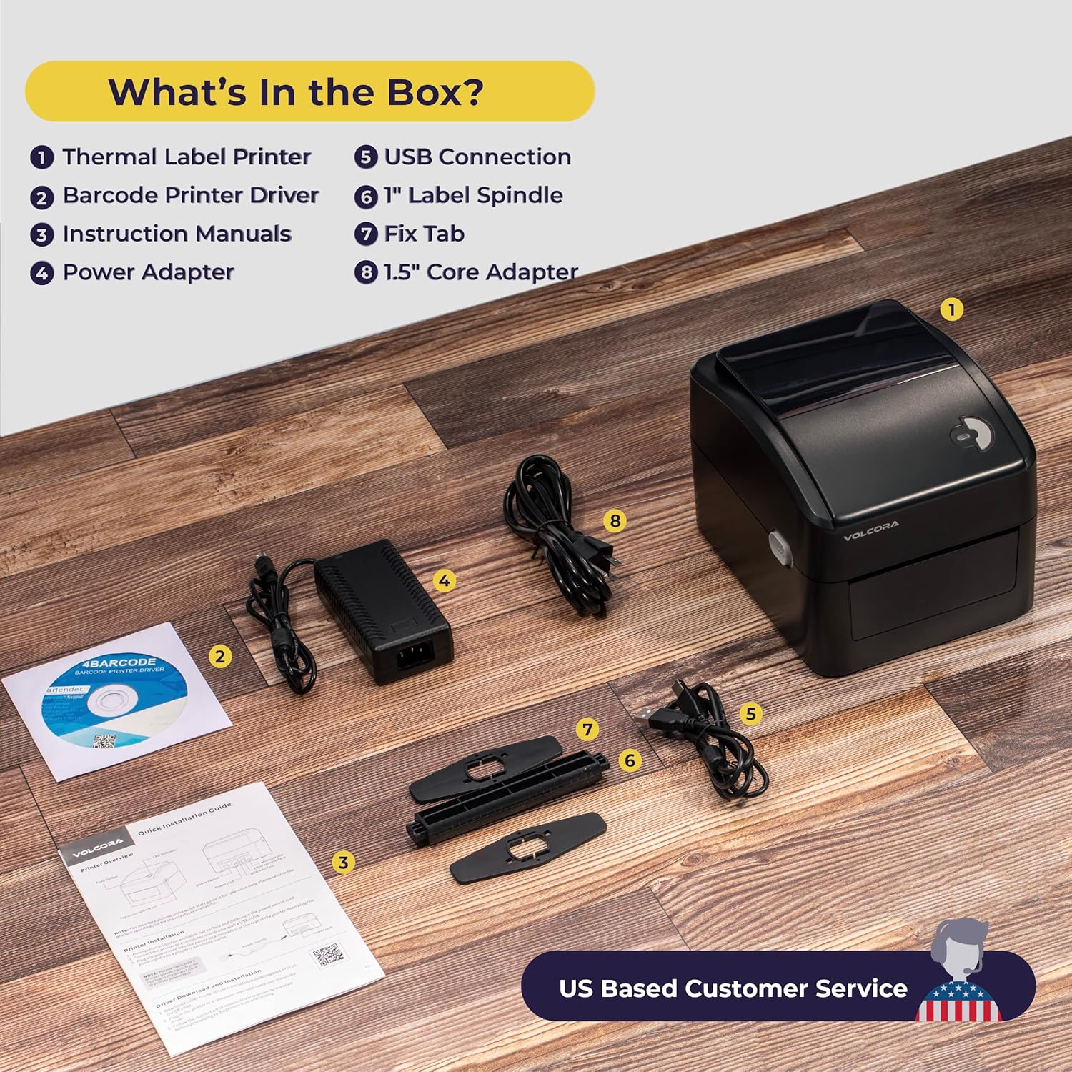 • EASY SETUP & TECH SUPPORT - The shipping label printer comes with a driver included for hassle-free installation on Windows, Linux, and Mac operating systems. Alternatively, users can scan the QR code on the manual or visit the support site to download the driver and tools. Our U.S. based customer support is also available for any technical assistance. Plus, all Volcora products come with a limited lifetime warranty so you can purchase with peace of mind.