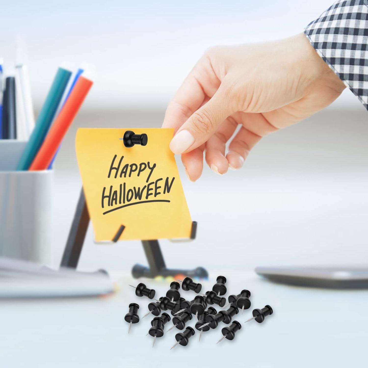 • Black wooden push pins, which is environmentally friendly and adorable, could also be serve as a family decoration.