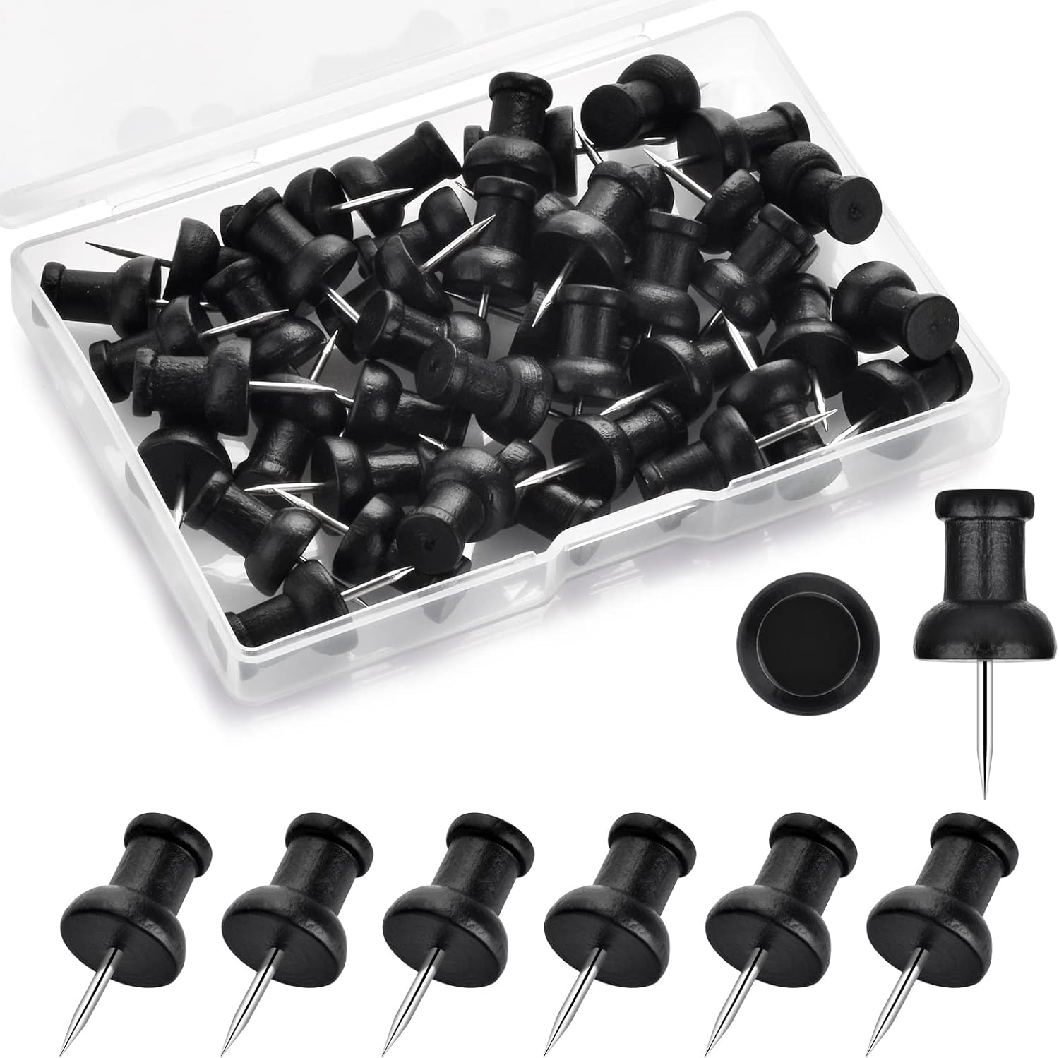 • These wood push pins packaged in a small transparent square box, portable to store and organize, keep well-regulated for your desk and drawer.