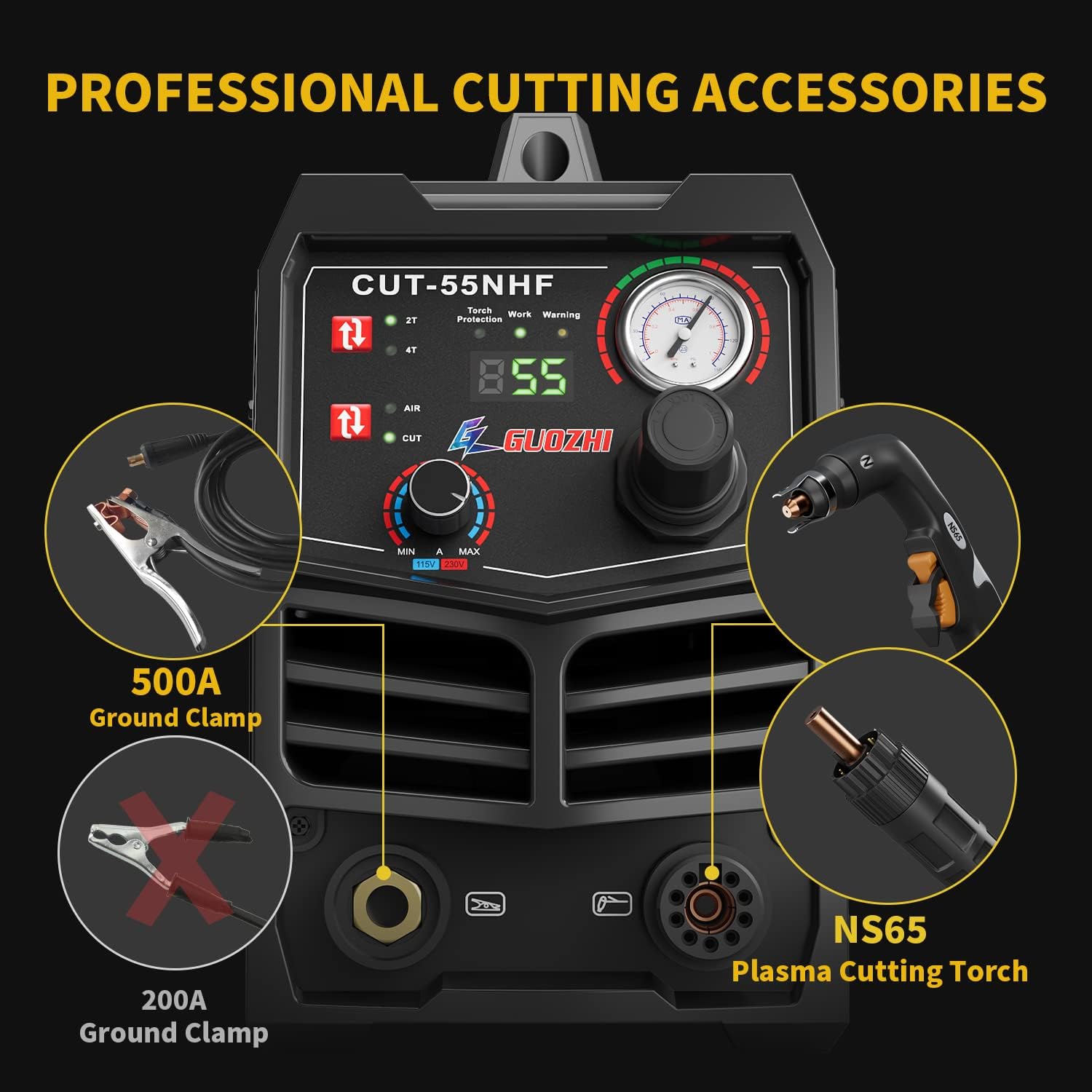 • 【Safety Guarantee】: GUOZHI 55 NHF Cutting machine with automatic drainage function, protect the electrode and nozzle. 2T/4T/TEST function, easy to operation. This Cutter with over-heating and over-current protection functions, with excellent and reliable quality, use more safety.