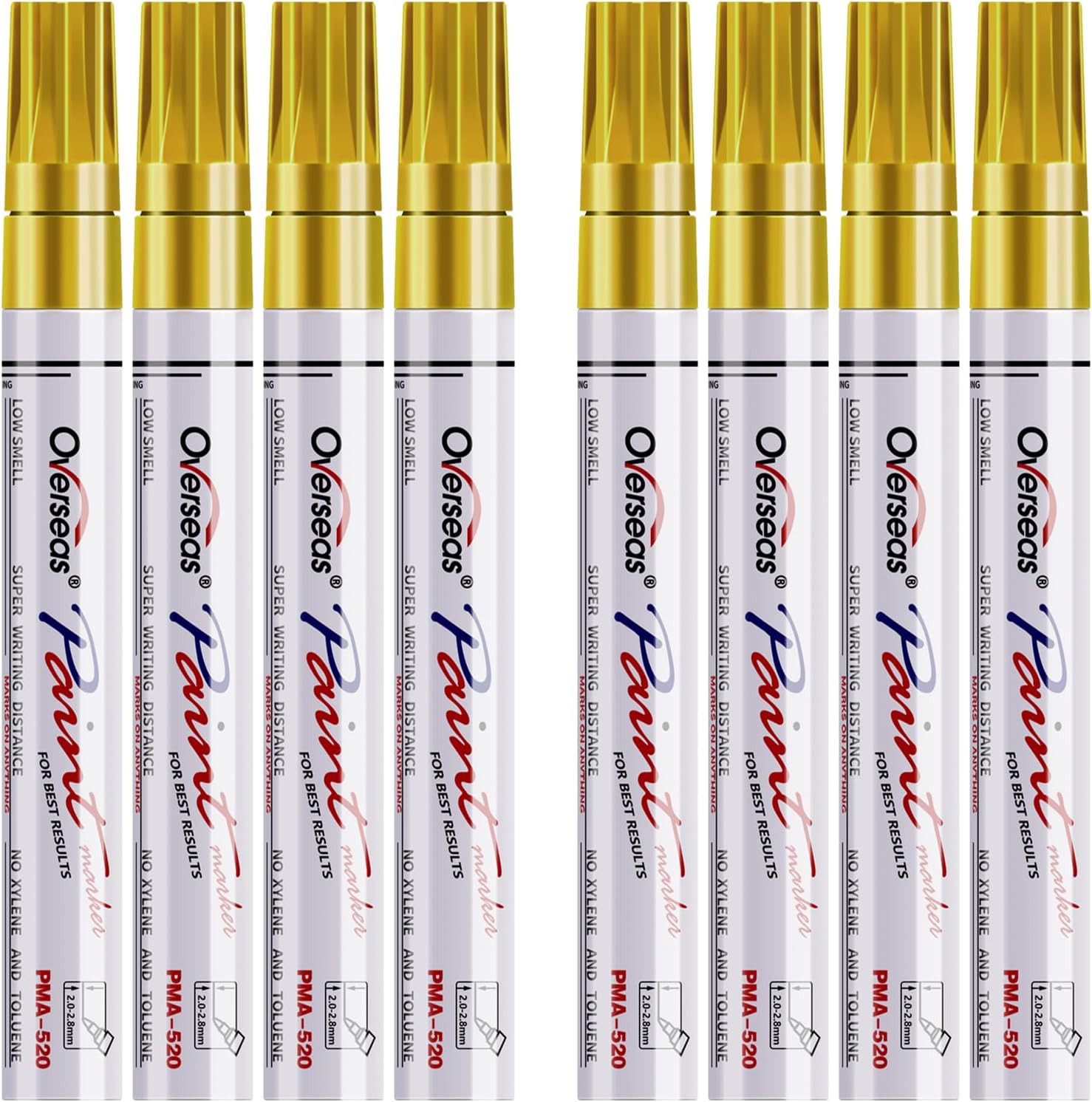 Paint Pens Paint Markers - Gold Permanent Markers 8 Pack, Oil Based Waterproof Quick Dry Medium Tip Marker Pen for Metal, Wood, Fabric, Plastic, Rock, Stone, Mugs, Canvas, Glass, Art Craft