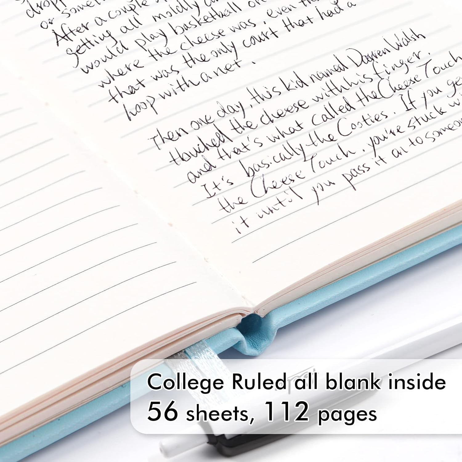 • These college ruled notebooks are all blank inside with 112 lined pages (56 sheets), which would be convenient for daily usage. The hard cover journal has a water-resistant faux leather cover, round corners and bookmarks, which is designed to lay and open flat. There’s a “date/page” column on the top of every page. You can use it as a reminder to let you remember those important dates and find the page you want in a very short time.