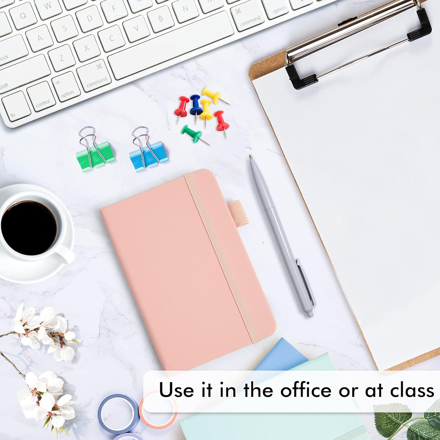feela 6 Pack Pocket Small Notebooks Bulk, Mini Cute Memo Notepads Hardcover College Ruled Lined Journals with Pen Holder for Women Girls Office School, with 6 Black Pens, 3.5”x 5.5”, A6, Mild Colors