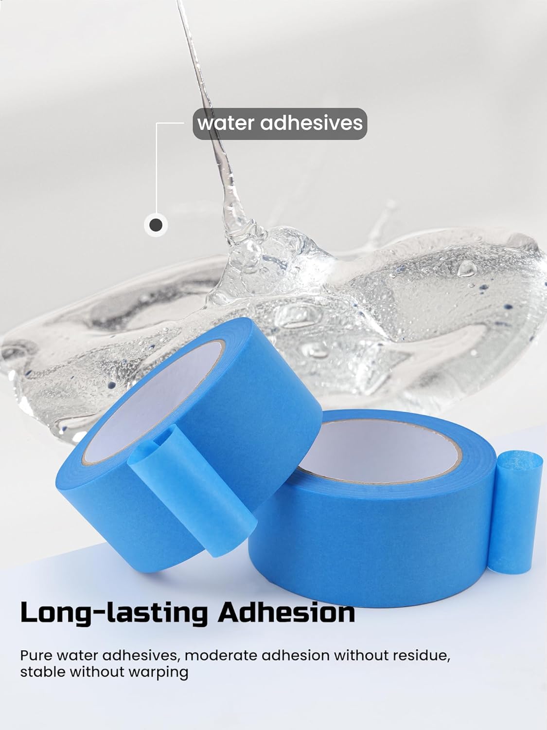 • Easy to Remove & No Residue: Painters tape features a low tack adhesive, which is pressure sensitive adhesive that can be used to reposition or reuse the tape anywhere, it is easy to peel, and reposition, without leaving any residue