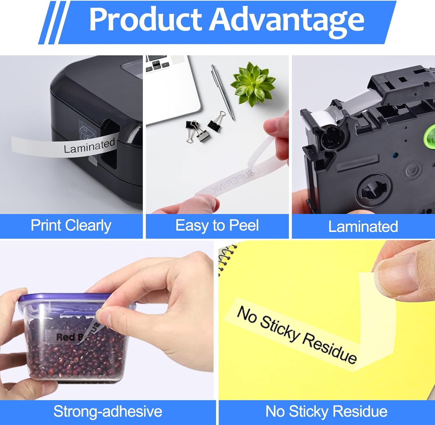 • USUPERINK Alternative Compatible Label Tapes Replacement for Brother Ptouch Label Refill TZe-131 TZe131 TZ-131 TZ131 AZe-131 12mm 0.47 inch 1/2'' Standard Laminated Label Maker Tapes.