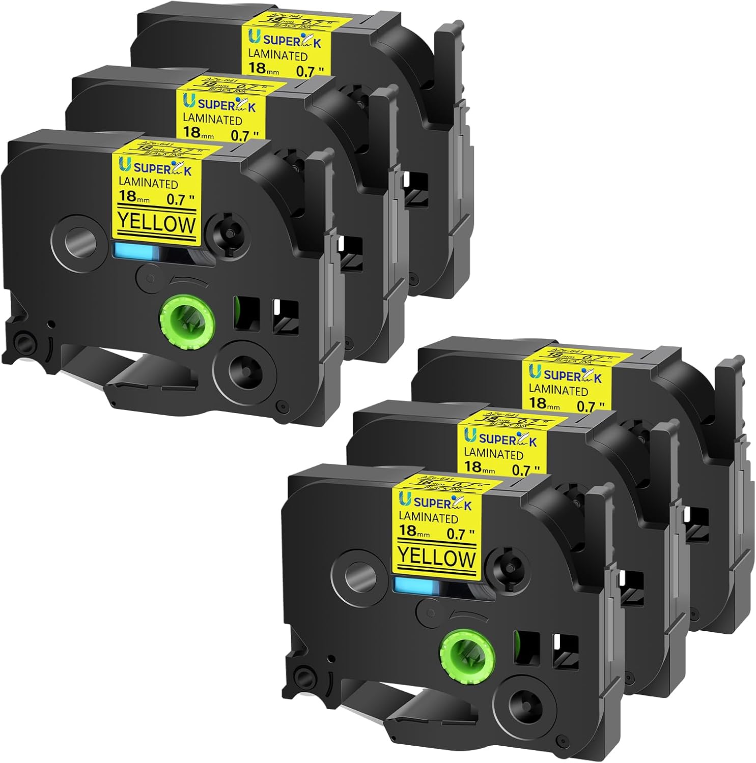 6PK 18mm Yellow Label Tape Compatible for Brother P-Touch Label Maker Tape TZe-641 TZe TZ Label Tape TZ-641 TZe641 18mm 0.7'' Laminated Black on Yellow for PT-D400 D410 D600 D610BT D460BT