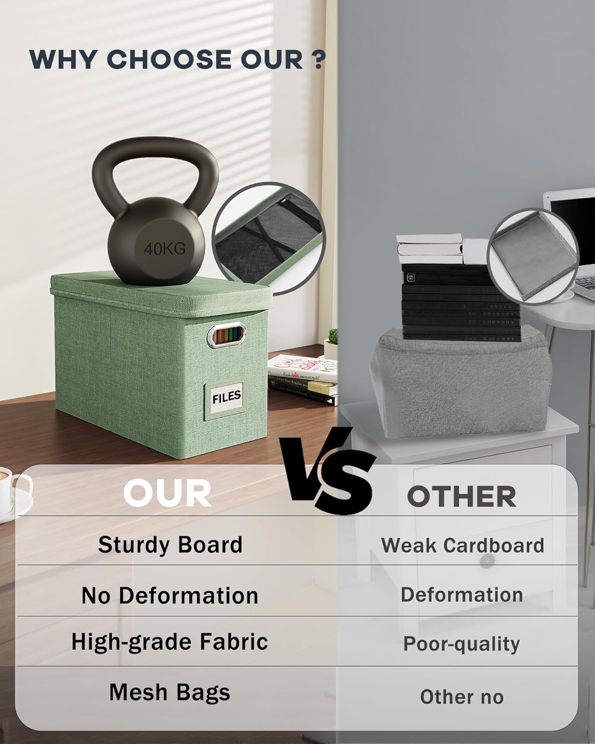 • 【Sturdy & Stackable】Portable storage box is made of well-made linen fabrics and durable material, with good support and bearing capacity, and the box top can withstand 100 lbs. The document boxes can be stacked when in use, or folded for easier storage when not in use.