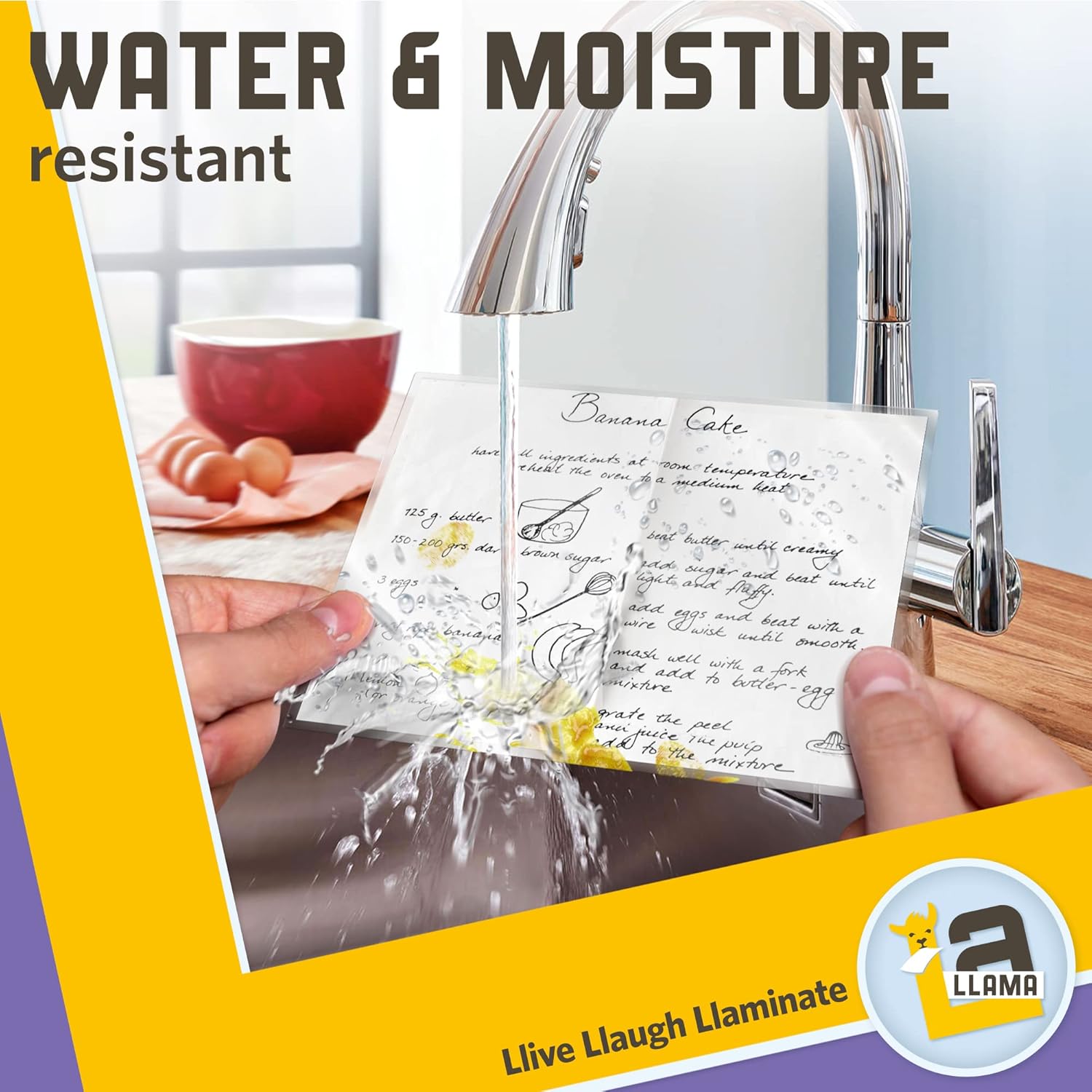 • 🦙Benefits of Laminate Sheets: premium quality laminating pouches extend the longevity of your essential laminate papers, add strength and durability to frequently used documents, certificates, cards, photos, study aids, bookmarks, and membership cards while protecting them from water/moisture, UV light, and creasing