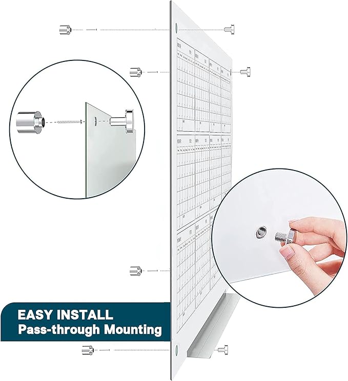 • 【Giant Glass Planner】Easily and clearly to show your style. It makes it easy for your team, class and family to stay organized and to set goals. With the hidden mounting hardware, it creates a floating appearance, making the board surface more fully used and a focal point of your space