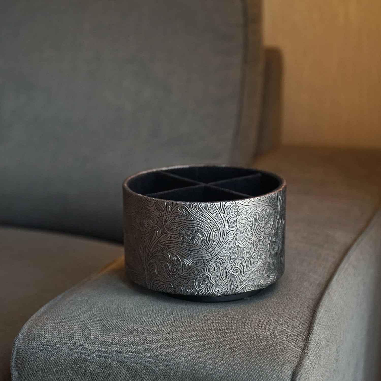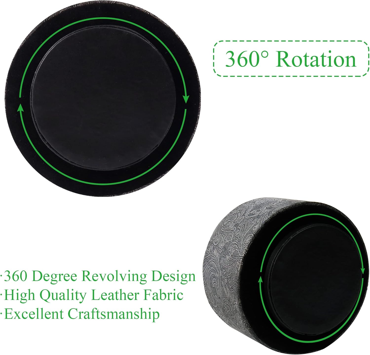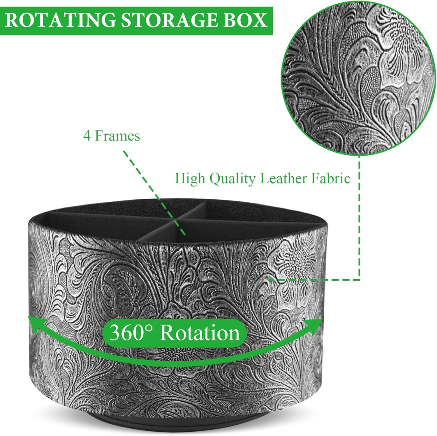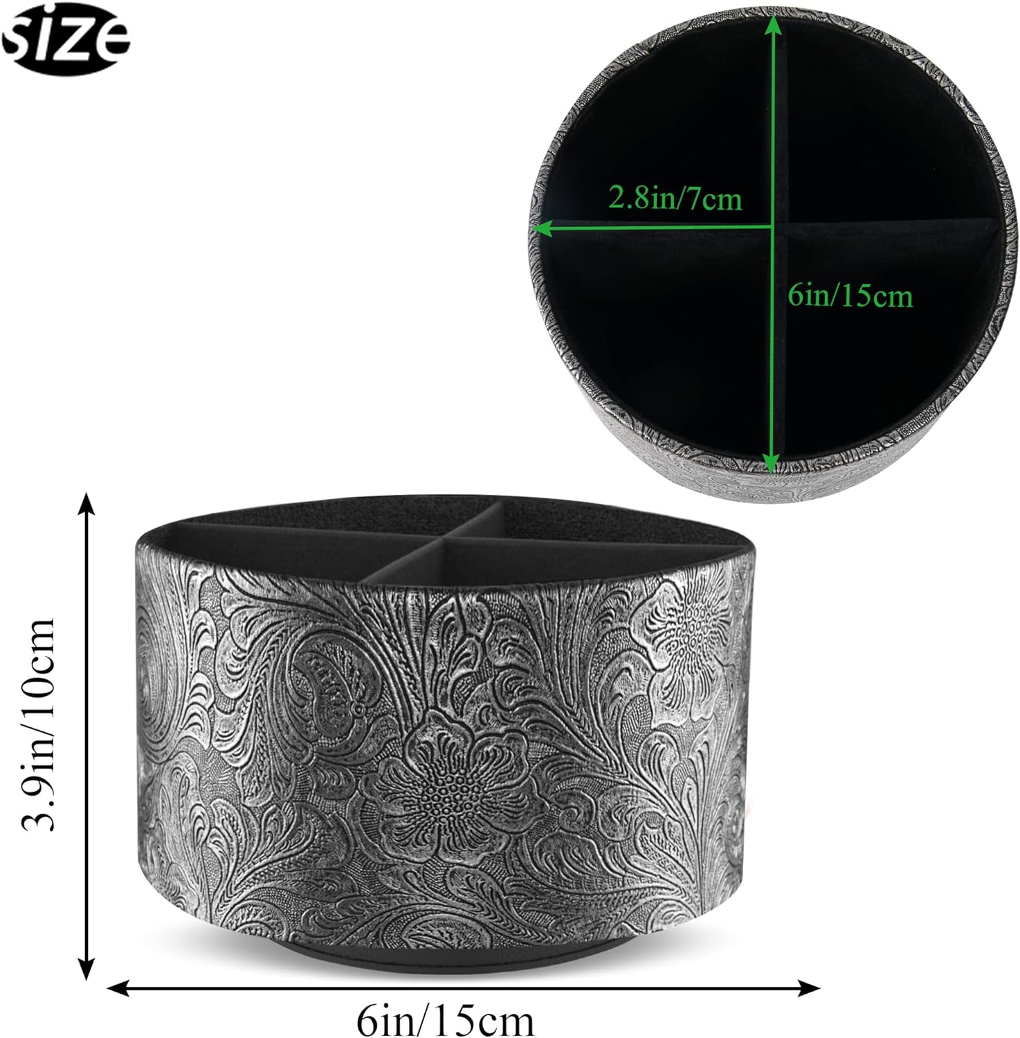 lizimandu Round Leather Art Supply Organizer,Remote Control Holder,360 Degree Spinning,Multi-Functional Pencil Holder,4 Compartments Desktop Stationary Organizer(1-Grey)