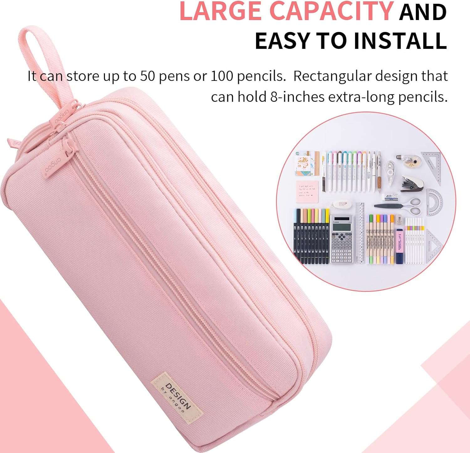 HVOMO Large Pencil Case High Capacity Holder Box Storage bag Desk Organizer Marker Pouch Pen For Middle School Office College Adult Girl and Boy(Pink)