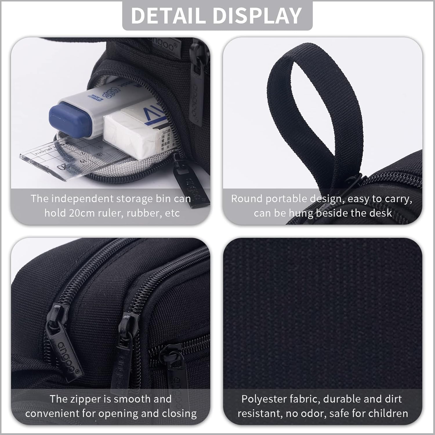 • Multifunctional: The pencil case is designed to store and organize pens, gel pens, pencils, rules, erasers, markers, scissors, protractors, calculators, compasses and other stationery items.