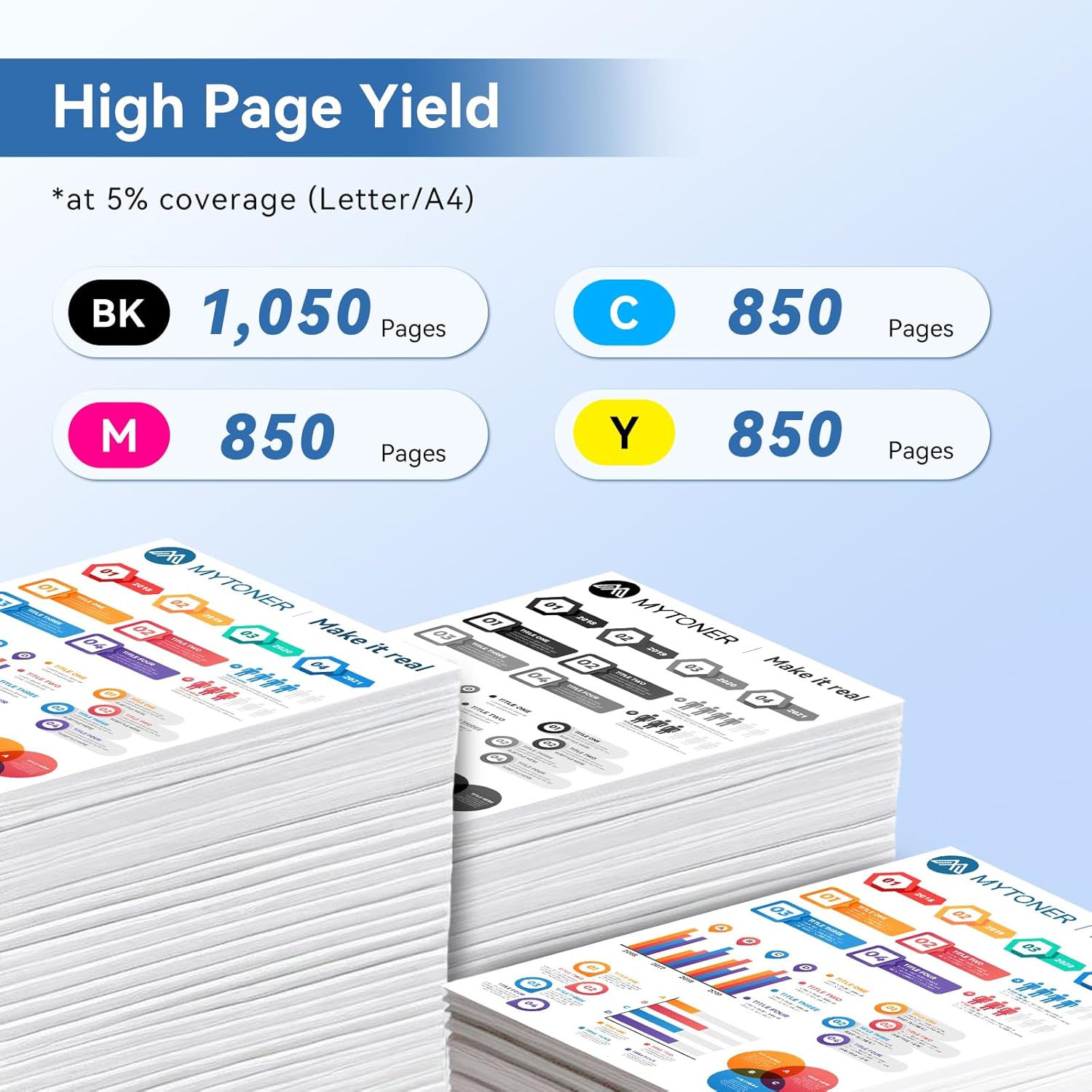• With Chip: 215A Toner Cartridges replacement for HP 215A Toner Cartridges 4 Pack High Yield Set with built-in smart chips are engineered to ensure strong compatibility and accurate recognition. NO need to remove and install the OEM chip manually