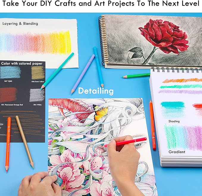 • Vivid,Vibrant Color : Each pencil inside is equipped with high quality cores.The silky smooth,velvety soft pencil leads lay down lots of vivid color,the colored core are highly pigmented, Perfect for coloring & drawing etc.Soft break-resistant cores produce incredible tone, perfect for blending and layering multiple colors.