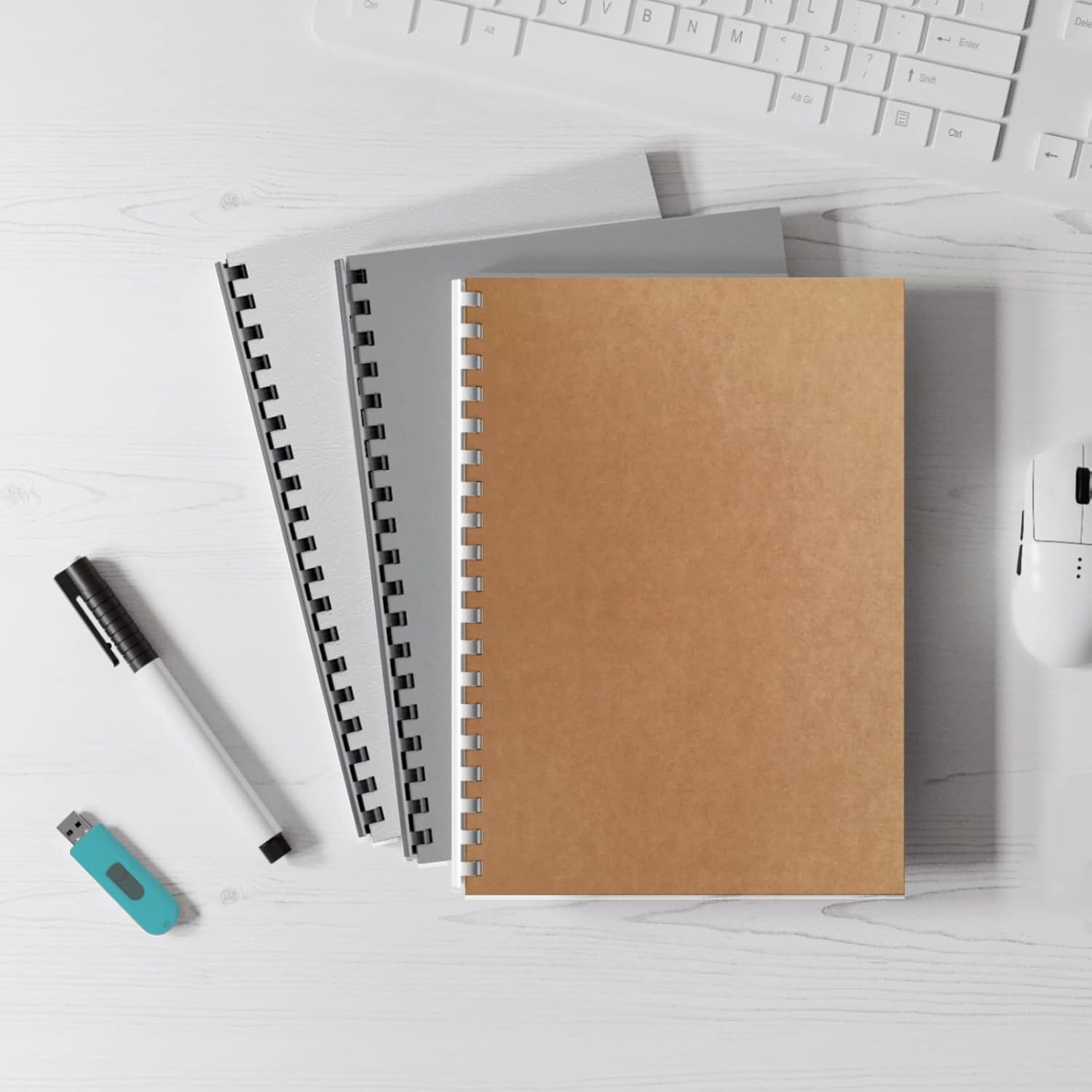 • 12 Mil Paper Cover: Each binding cover is made of 230 GSM nature kraft paper that feels thick and sturdy, designed to give each heavyweight kraft cardstock a sleeker and more elegant feel. Natural colors and environmentally friendly. This 12mil paper binding cover is made to last without tearing or bending.