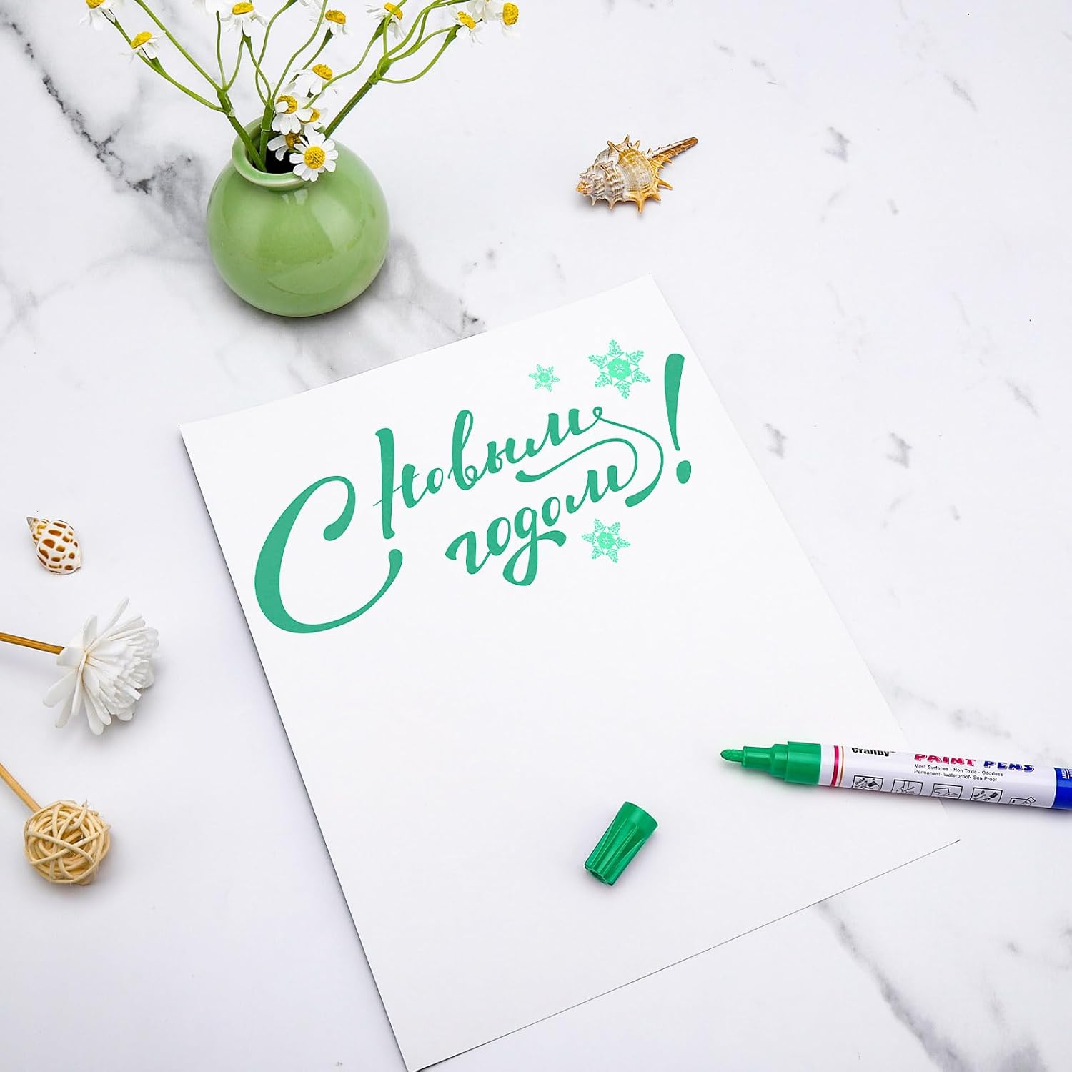 Green Paint Markers, 2 Pack Oil-Based Waterproof Quick Dry Permanent Paint Pen Set for Rocks Painting, Wood, Fabric, Plastic, Canvas, Glass, Mugs, Metal, Tire, Stone, DIY Craft