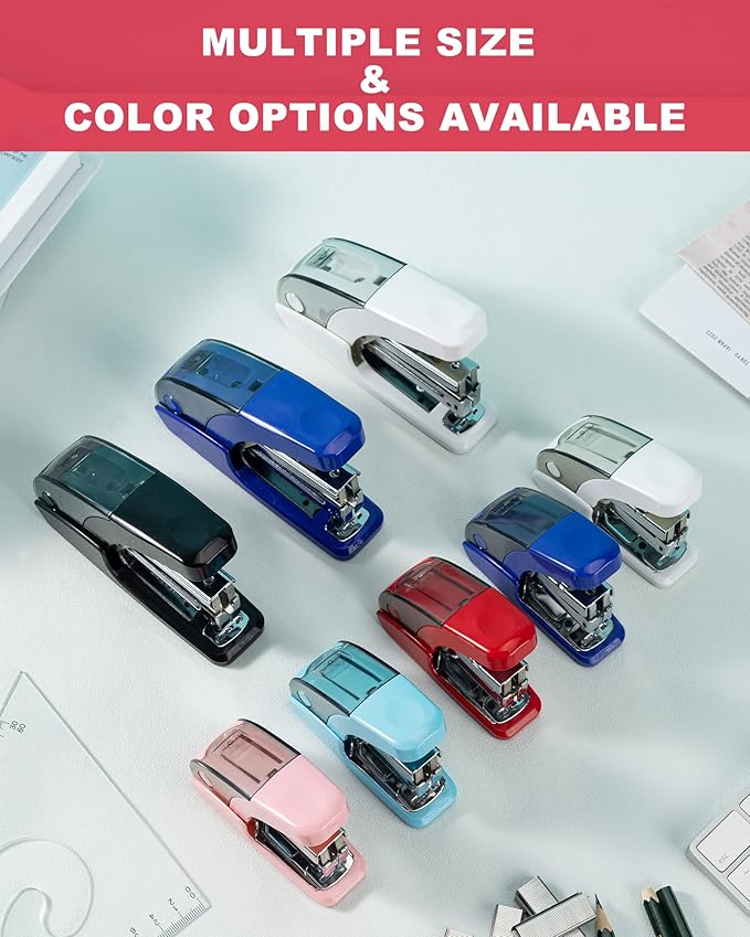 • 👉[20 Sheet Capacity] - This compact design half strip stapler holds up to 50pcs 24/6 staples or 65pcs 26/6 staples, fits properly on smaller desks. Fully meet the daily work, office & school needs.