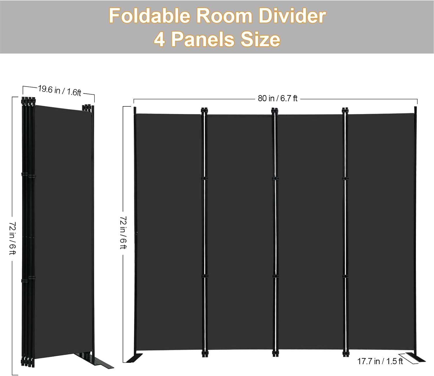 • 【CREATE A PRIVACY SPACE】- This screen room divider can section off space into separate areas as a temporary wall. Max expanded size is 80"W X 17.7"D x 72"H. Regular use width is 60"~70" depending on the angles kept.