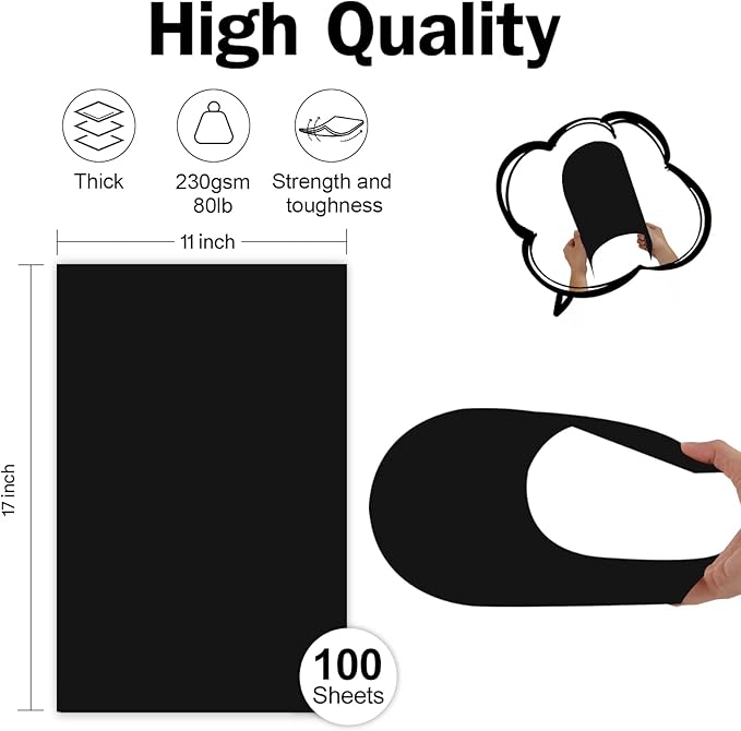 • Paper Dimension: Each package includes 100 sheets of black cardstock paper, measures 11 x 17 inches in ledger size, 230 grams in weight with full 98 brightness