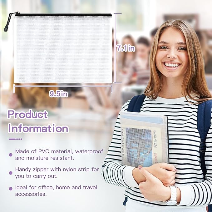 Umriox Small Zipper Pouch, 9.5x7.1 in (Black, 36 Packs), Mesh Bags with Zipper, Storage Bags, Zipper Bags for Office Supplies Travel Storage